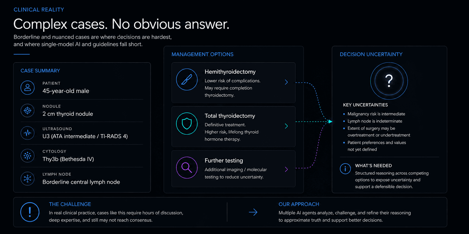 Built first for cancer MDT decision-making. Initial domain: Thyroid cancer.